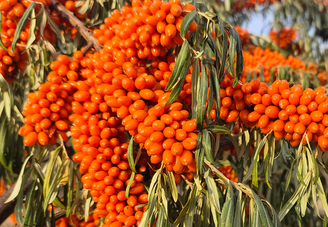 培育出眾多優(yōu)良沙棘品種,如 深秋紅沙棘樹(shù)苗、無(wú)刺楓、狀元皇、實(shí)優(yōu) 1 號(hào)、無(wú)刺雄株等